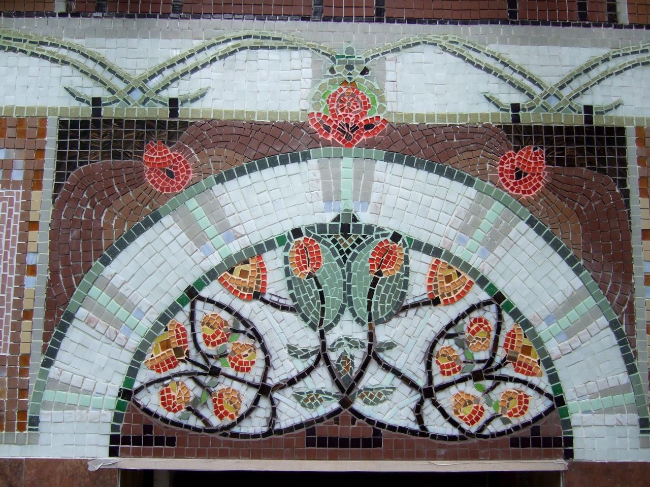 I thought today would be the day I finish the grouting, but it was not to be - things always take longer than you think... and on top of the disappointment, all my careful color mixing has not had the DRIED effect I hoped for. The grout dries much lighter than the mixed color. MUCH lighter. I will probably redo some areas, especially the central brown figure just above the doorway.